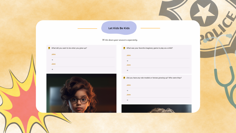 By sharing and exploring your early memories, you gain invaluable insight into each other's upbringing, values, and influences. These shared experiences and stories can help foster a deeper bond, a stronger understanding, and a greater empathy between you. The "Childhood Memories" template encourages open communication, helping you to cherish your shared history and celebrate your partner's unique journey.