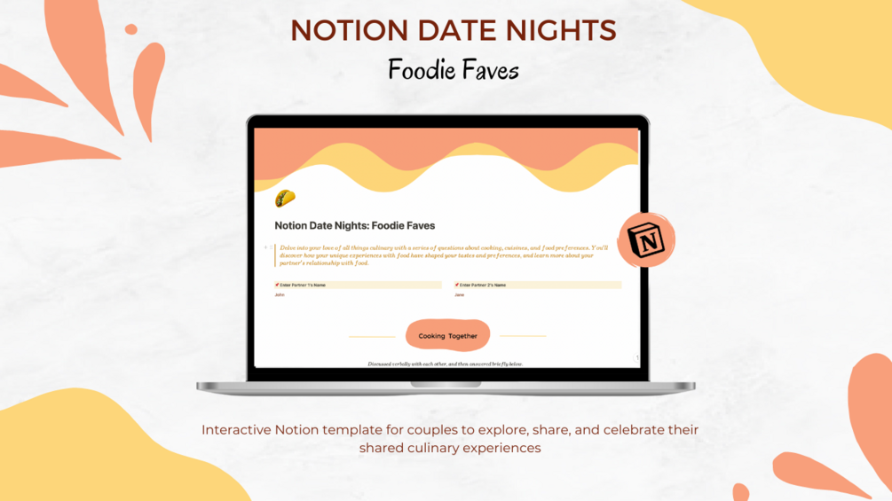 Unearth and celebrate the diverse flavors, preferences, and memories associated with food in your relationship with our comprehensive "Foodie Favorites" Notion template.
