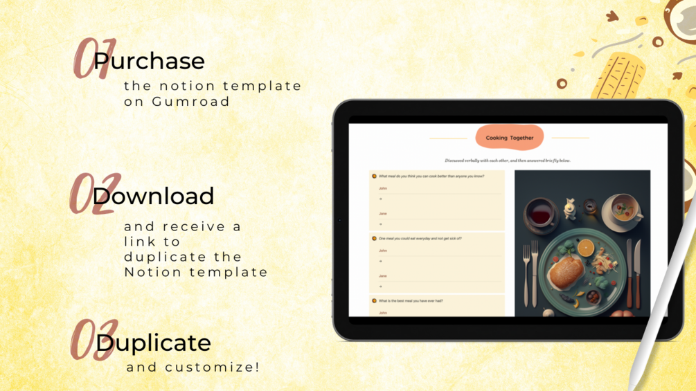 With this unique Notion template, couples can embark on a culinary exploration, documenting and sharing favorite foods, cooking experiences, preferred cuisines, beloved restaurants, and engaging in a range of "Would You Rather" prompts. The template is not merely a questionnaire but an interactive getaway where you can record, revisit, and delight in your shared food adventures. And like always, you can duplicate this to your workspace and fill it out at your convenience.