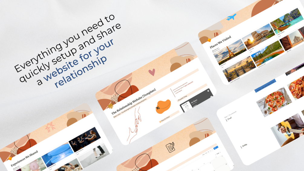 Sometimes we find ourselves answering these questions time and time again. Yes we have modern day apps and tools like Google Photos that make sharing pictures easy; but what if you want to go a little bit extra? What if you want to showcase the flare in your relationship? What if you want to tell the world the tiny quirks that make your relationship special? What if there's one URL that anyone on the internet can visit to know the story of how your love blossomed? That's what our Notion Template is for - a space on the web that you can use to recite the story of your relationship - in your own special way - in your combined voice.